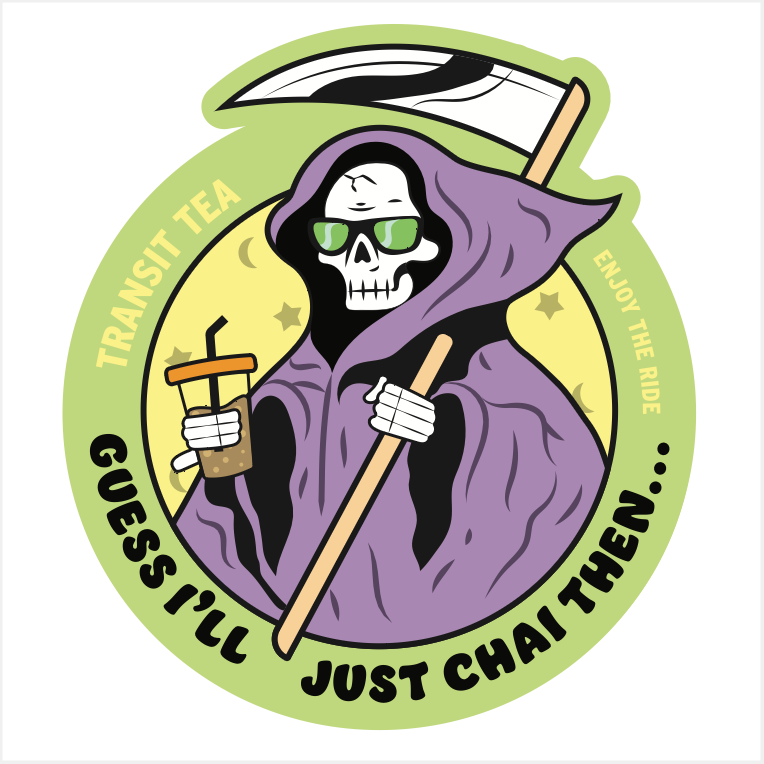 Making stickers is one of my favorite things to design. As a self professed stickerholic it was a blast to have more creative liberties and go wild with different themes. Here are some of my favorite stickers I made for Transit Tea throughout 2025. Featured is the Chai Reaper, Matcha Man, Matcha Muchacha, and the fierce Tiger Cola.